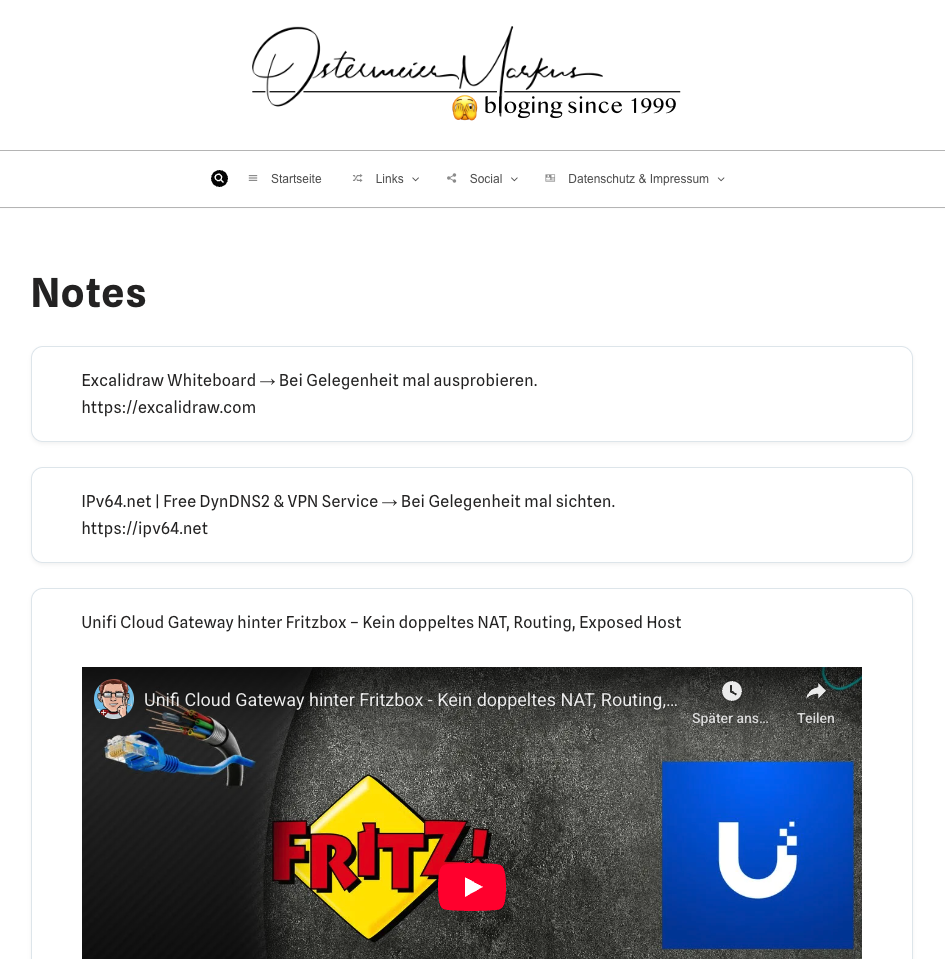 Wie in einem anderen Artikel schon erwähnt, bin ich gerade am experimentieren, dass ich diesen WordPress-Blog mittels dem ActivityPub-Plugin „Fediverse-tauglich“ mache. Das ist eine recht interessante Reise, bei der es immer wieder Hürden zu nehmen gibt. Aktuell verwende ich das WordPress-Plugin „Indieblocks„, um „Kurzmitteilungen“ (aka „Notes“ für kurze Texte wie bei Twitter) und „Likes“ (für URLs zum Merken) zu veröffentlichen. Diese unterscheiden sich von „normalen WordPress-Posts“ hauptsächlich durch ihre Länge bzw. den Umfang. Das funktioniert für mich schon soweit ganz gut und ich nutze diese „Kurzmitteilungen“ auch oft, um für mich selbst Seiten, Themen oder URLs zu merken. Praktisch ist hierbei auch, das ich direkt über meine Webseite mir auch wieder eine Übersicht der Notes und Links anzeigen lassen kann.
